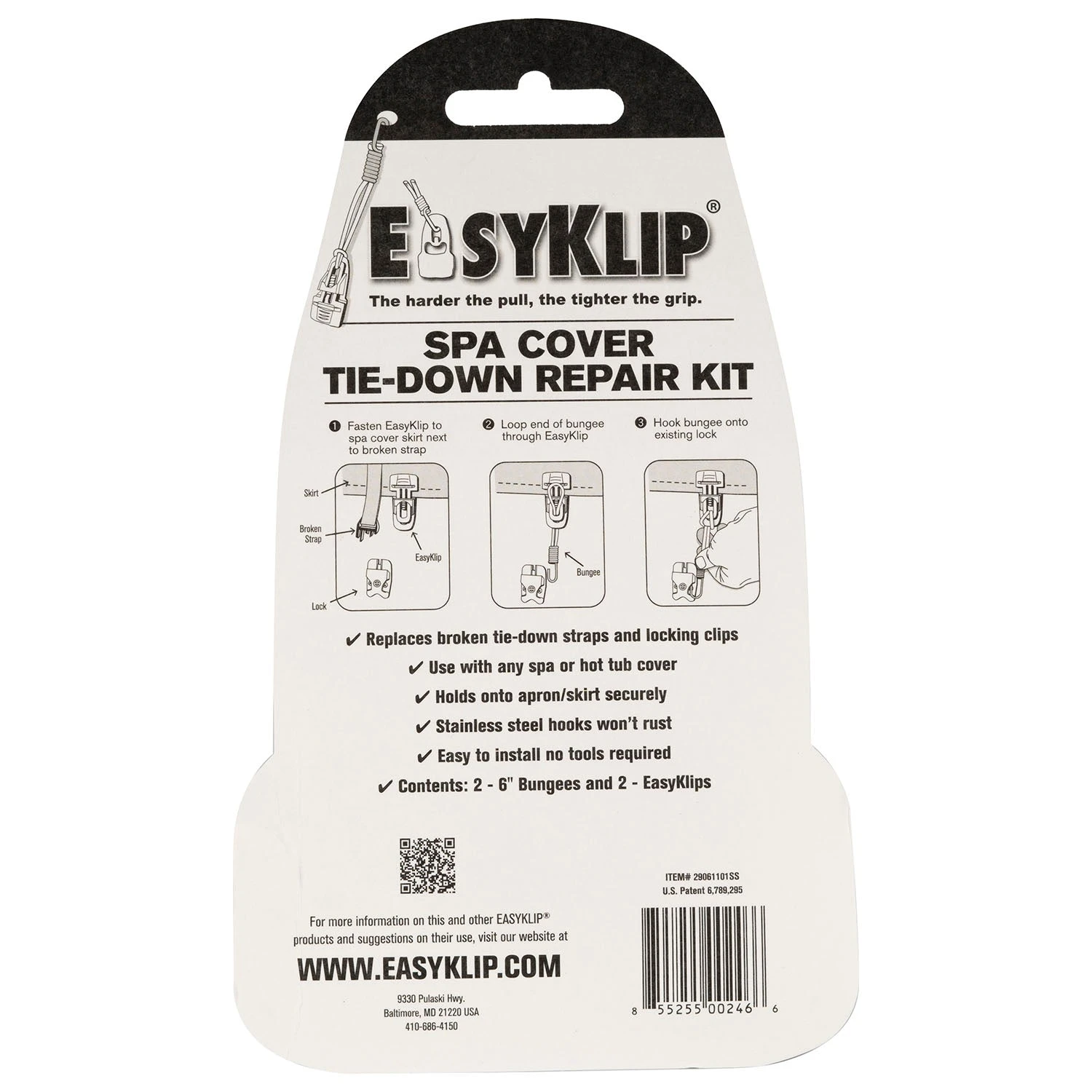 EasyKlip® is the world’s strongest tarp clip, making it just perfect for temporary repairs to damaged spa cover straps. Featuring a unique gripping action, (the harder the pull, the tighter the grip), EasyKlip fastens just about anything to anywhere and takes seconds to attach.
