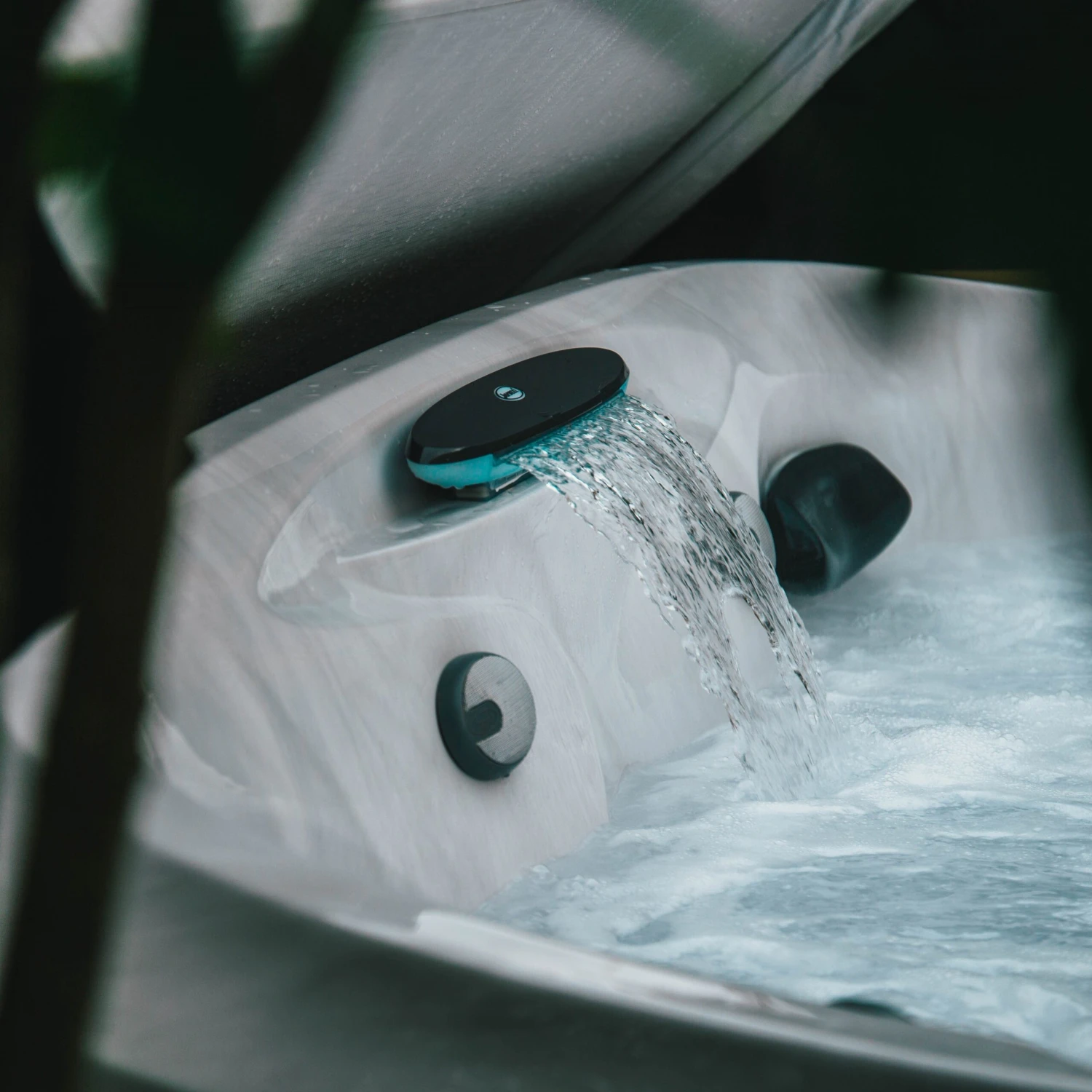 55 PowerPro™ jets are positioned for everyone to enjoy renowned Jacuzzi® hydromassage. Adjustable pillows are perfect for people of differing heights to enjoy ultimate relaxation. The jetted waterfall seat provides a wide sheet of water over your shoulders and an invigorating upper back massage, while the lounge seat offers a full-body hydrotherapy experience. A low-profile foot dome delivers reflexology for your feet to leave you feeling revitalised.