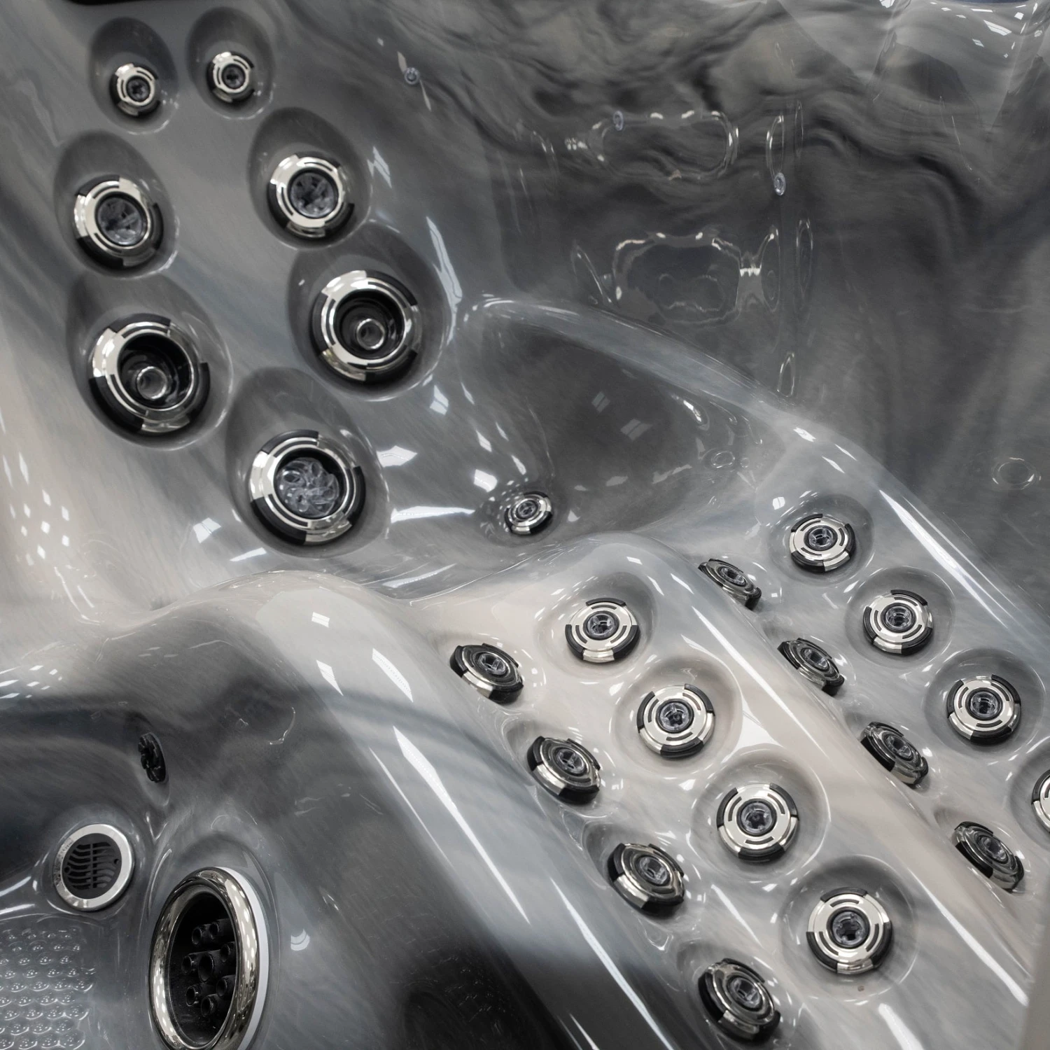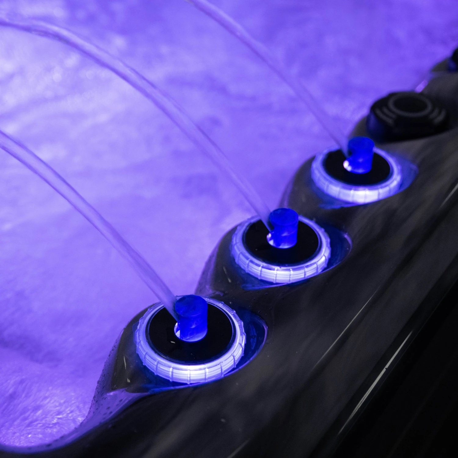 49 rotating and directional jets have been placed in a specific formation for various muscle groups in each seat so you can focus on key areas to suit your needs. There’s even a selection of diverters placed around your hot tub to give you complete control of pressure and jet selection using the control panel. The LED-backlit water fountain adds to your well-being journey.